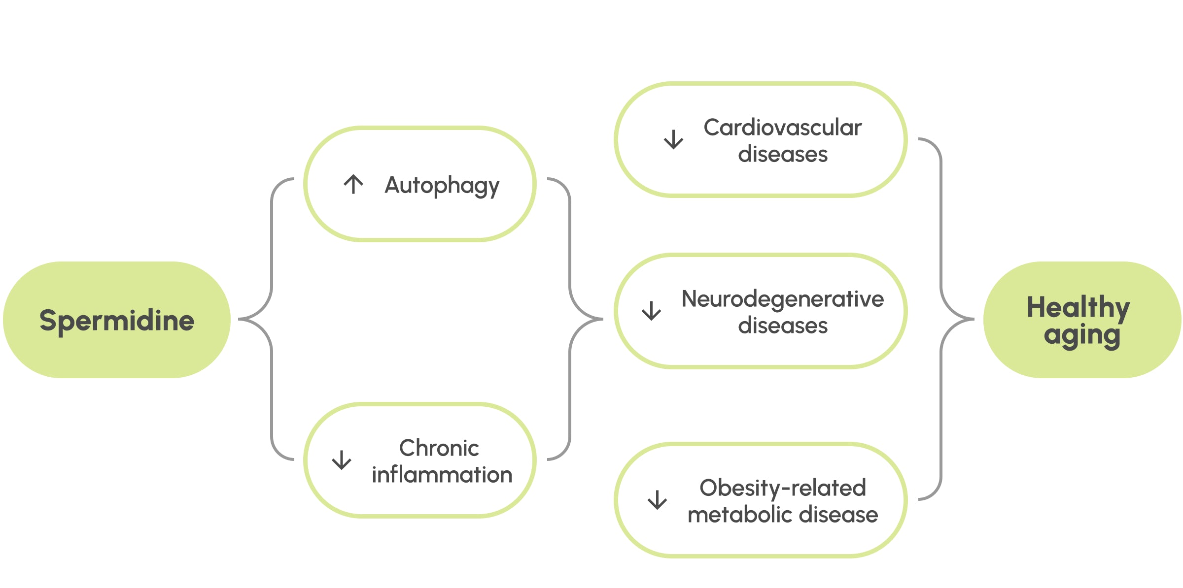 Spermidine is an important molecule in metabolism and essential for promoting autophagy and controlling inflammation. Some preliminary results in animals and humans also support benefits for cardiovascular, neurodegenerative and metabolic health diseases. Some studies even show a potential connection with longevity. There is still a lot to find out about the action and benefits of spermidine and the human trials that are underway promise to do just that.